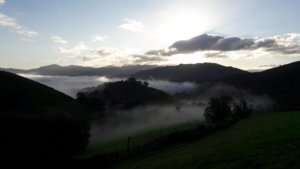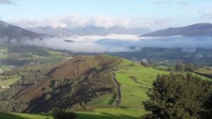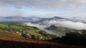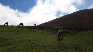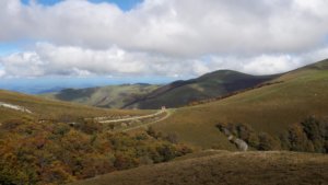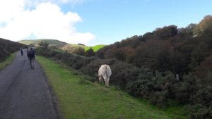 Ezután egy többórás masszív hegymenet következett, állatokkal, emberekkel, sok szederrel az út szélén, kis müzli szelet-szünetekkel, hol egyedül, hol Zsomborral bandukolva és beszélgetve (már amikor kaptam levegőt). Néha elméláztunk, merre lehet a csúcs, meg aztán a vége, de tulajdonképp mindegy is volt, itt most nem lehetett más opció, el kellett jutni Roncesvalles-ig.