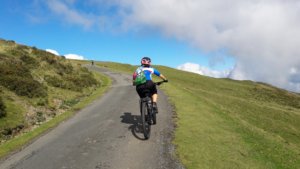 Egyfolytában kerestük a francia-spanyol határt, mígnem egyszer csak kiderült, hogy éppen azon haladunk egy kis ideje (a Navarra jelzés árulkodó lehetett volna). Újabb örömforrás, ami továbblendített a csúcs felé, és a nagy számolgatásban, hogy milyen magasan lehetünk, végül csak elértük az útvonal legmagasabb pontját (Col de Loepeder, 1450 m).