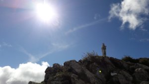 A gyors Camino-indító fotók után útra keltünk, mindenütt kagylókat keresve, hisz ők lesznek leghűségesebb társaink a következő hetekben. Hamarosan egyre többen csatlakoztak a környező mellékutcákból, többeket utolértünk, néhányan megelőztek, az viszont elég kiábrándító volt, hogy az autók is ugyanezt tették. Egyébként szinte még sötétben indultunk, kb. 7-8 fokban, de fél óra után a kabát, 1,5 után a pulcsi került le rólam, +nadrágszárfelhajtás és 6-os naptej az orromra (teljesen hatástalan), így lett teljes az outfit. Elég gyorsan emelkedtünk, a látvány leírhatatlan, muszáj volt sokszor megállni nézelődni.