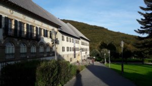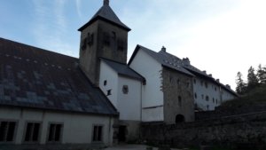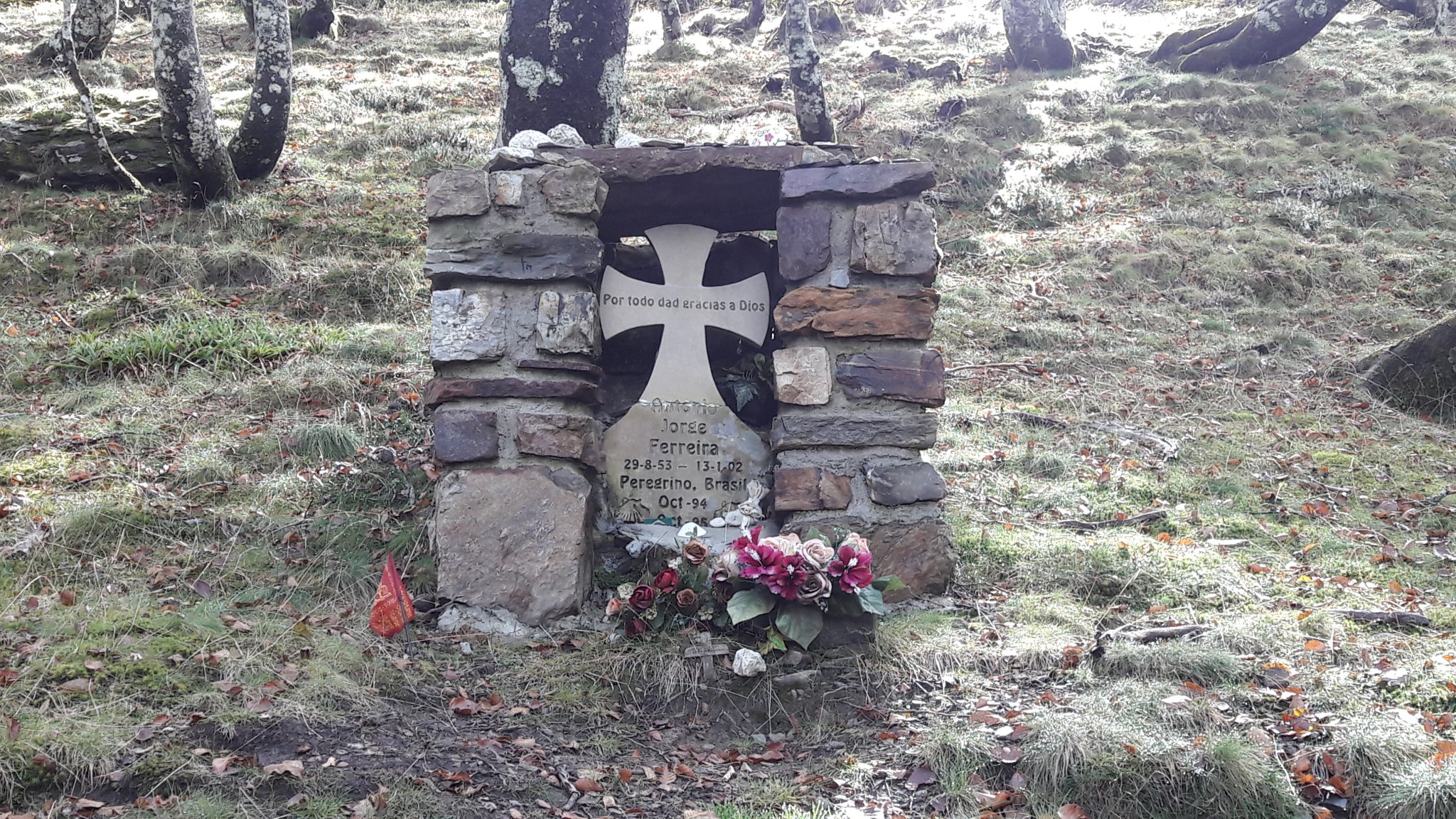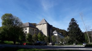 A tábla szerint kb. másfél órányira volt még Roncesvalles, de ezeket az időket korábban sem igazán tudtuk tartani. Az út lefelé szinte még rosszabb volt, mint felfelé, de sokat segítettek a túrabotok, így nagy nehezen sikerült kb. 3/4 5-re megérkeznünk a kastélyba, a mai szállásunkra.