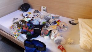 Elég hosszú volt a sor, és már nem túl sok a szabad ágy, de nagyon klassz a hely, és lehetett kérni vacsorát meg reggelit. Éltem is ezzel a lehetőséggel, mégsem ehettem el Zsombor elől a szottyadt kifliket… A hálóterem újabb meglepetést tartogatott: semmi emeletes ágy (mint utóbb kiderült, ez csak a “tetőtérben” igaz), kettes boxok, elég újszerű bútorzat és sok pakolóhely (rendmániások álma).