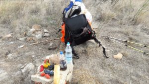 Egy darabig megint együtt mentünk, és az utunkba került egy elég elhanyagoltnak tűnő kiskert Luquín után. Lehullott, rothadó paradicsomok, kókadozó növények mindenfelé, gondoltuk, egy-egy paradicsom és paprika a bocadilloshoz jól fog jönni. Ráadásul egész délelőtt vágytam egy kis gyümölcsre, mondjuk egy jó körtére, és lám, azt is megadta az Út. Ez is a Camino egyik kis csodája: jóllakatja az éhes zarándokot! Amikor továbbindultunk és nem nagyon találtuk a sárga nyilainkat, persze kiderült, hogy nem is erre kellett volna jönni, de az utánunk érkezőket bevárva és követve visszataláltunk a helyes ösvényre. Cruce-nél összeért a két út, így a hamarosan felbukkanó bárféleségben egyre többen csoportosultak reggeli útitársaink közül.