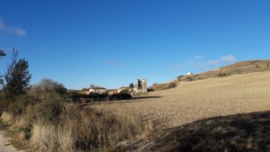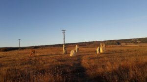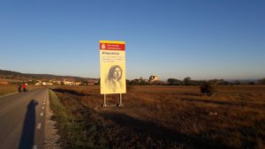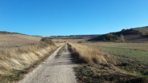 Az út Atapuerca-ig az aszfaltozott főút mellett vitt, szerencsére autó csak nagy ritkán jött a 2,5 km-en. A település a XI.században egy híres csata helyszíne volt, amelyben az akkori király is elesett, ennek állított emléket a pár darabból álló kőemlékmű még a faluba érkezés előtt. Az ellenkező oldalon pedig egy nagy tábla hirdette az úttól kb. 3 km-re fekvő régészeti lelőhelyet, ahol vasútépítés során őskori barlangokat tártak fel, bennük az Európában talált legkorábbi emberi maradványokkal. Talán érdekes látnivaló lett volna, de sem időben, sem km-ekben nem kalkuláltam bele a napomba, úgyhogy kimaradt.