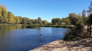 Az öltözködés közben a “kis csapatom” elment mellettem, de messziről láttam, hogy tanácstalankodnak az útvonalat illetően, és mire valaki megmutatta nekik a helyes utat, épp odaértem, így együtt meneteltünk Burgos felé. Brahma másik utat választott (3 alternatív út is vitt be a városba), így őt elvesztettük, én végig Lucia-val beszélgettem, amíg elhaladtunk Burgos kis repülőtere mellett és – bár azt hittük, végre a városban vagyunk – csak Villafría-ba, Burgos külvárosába érkeztünk meg. A forgalom viszont már itt is ijesztő volt, kezdtünk elszokni tőle az elmúlt majd’ két hétben…