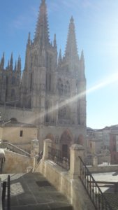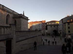 Az albergue melletti kis lépcsősort már előző nap kinéztem, ezúttal meg is másztam, a tetejéről egy meredek utcácska vezetett fel a Castillo-hoz, azaz a burgos-i Várhoz, ráadásul egy templom (Iglesia de San Esteban) is útba esett felfelé. Ha már egyszer nem gyalogolok ma az Úton, kellett valami kis mozgás!