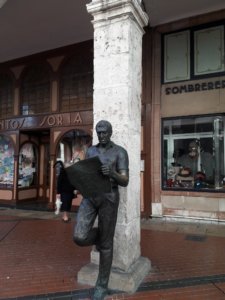 Apropó, németek! Sajnos már csak későn tudtam meg, hogy az éjszakát Felix és Maria is ebben az albergue-ben töltötték, de ma ők is továbbmennek, így nem találkoztunk (…soha többet, szóval elmaradt a közös éneklés Felix-szel). Mindezt a nem túl szimpatikus német lány, Anna mesélte, aki még reggel elkapott a szobában, hogy akkor maradok-e, és nem reggelizünk-e együtt. Hosszú volt még a délelőtt, a reggel elég hűvös, nem volt még kedvem sétálni, a katedrális is zárva, szóval belementem, hogy együnk valahol valamit. Nem sok hely volt nyitva, de ahol tegnap Nour-ral és Susanne-nal iszogattunk, most reggelizőként üzemelt, kaptam tortilla-t friss narancslével, nem is kellett több. Ilyen körülmények között még Anna-t is képes voltam hosszabb ideig békésen hallgatni, pedig továbbra is nagyon furcsának találtam. Tényleg kedves lány, és nem tudnék rosszat mondani rá, de az a típusú ember, aki az enyémtől szinte mindenben eltérő véleményének elég lenézően ad hangot. Milyen dolog már, hogy én kólát meg kávét iszom (bezzeg az ő cukros kakaója meg croissant-ja!), okostelefont használok (ő csak valami régit hozott, de van útikönyve és fényképezőgépe), stb. Abból, amit mesélt magáról, nagyon az jött le, hogy erősen vallásos (talán ezért is tart minden vasárnap pihenőnapot), azt hiszem, szociális munkásként dolgozik, és szerintem még soha nem volt párkapcsolata, ettől egy kicsit frusztráltnak tűnt. Apropó, férfi! Bár az egyik kitűzött célom az volt, hogy “otthagyjam” ő(ke)t is a Caminon sok más terhemmel együtt, azért azt nem bírtam ki, hogy egy Feliz cumpleanos-t ne küldjek vágyaim nem-is-annyira-titkos tárgyának. Egy Realosnak mégiscsak spanyol szülinapi üdvözlet jár, és úgy látszik, ez nekem is hagyományosan spanyol időszak, tavaly ilyenkor épp Barcelonából tartottam hazafelé. Kicsit megbolygatta a lelkemet, hogy válaszolt, ezután azért még sokszor eszembe jutott a szép fogorvos, de a Camino végül ezt is megoldotta…