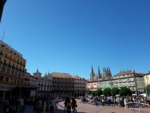 Az Arco de Santa María-n (Szent Mária-kapu) keresztül az Arlazón folyóhoz lehetett jutni, majd egy másik kis utcán vissza a Plaza Mayor-hoz, ahol már gyűlt a tömeg a verseny befutójánál, és a gyerekeknek is szerveztek valami foglalkozást, mert láthatóan nagy munkában voltak.