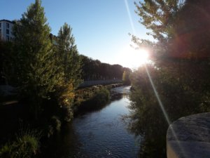 A folyópartok minden városban nagy kedvenceim, itt is terveztem, hogy ott üldögélek majd egy kicsit, de nem maradt már sok idő a fél 8-as zarándok miséig, így inkább csak sétáltam a város még fel nem fedezett részein. A parti sétányon kézművesek és környékbeli termelők árultak mindenféle fantasztikus dolgot, pl. sajtot, olajbogyót, chorizot, kenyereket, amiket legszívesebben azonnal végigkóstoltam volna, de az árakat sajnos nem zarándok-költségvetéshez mérték. Inkább gyorsan odébbálltam, és a következő hídon átmentem a folyó másik partjára, ahol túl sok érdekesség nem volt, de legalább étvágygerjesztő dolgok sem, csak egy kisebb templom, de oda nem mentem be, a mai templomkvóta kimerült délelőtt a katedrálissal.