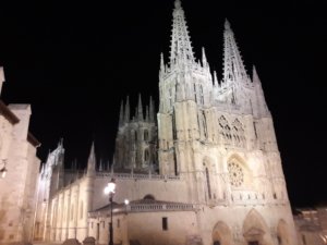 Szinte egész nap egyedül voltam egy – legalábbis Camino-mértékkel mérve – nagyvárosban, nagyon kívülállónak éreztem magam a sok helyi és turista között, akik biztosan látták rajtam, hogy zarándok vagyok, de itt nem úgy kezeltek minket, mint egy kisebb településen. Közben pedig a kényelmes, privát hotelszoba kiragadott a zarándok-létből is, szinte bűntudatom volt, hogy ilyen “luxusban” töltök el egy éjszakát, és tulajdonképpen inkább éreztem magam valami magányos utazónak, mint zarándoknak. Az ismerőseim ráadásul valószínűleg mindannyian előttem legalább fél, de inkább 1 nappal, talán sosem fogom újra látni őket, bár jön a Meseta, ahol végre hosszabb szakaszokat szeretnék menni, viszont ezzel nyilván ők is így vannak, tehát a távolság megmarad. Bevallom, az is megfordult a fejemben, hogy mi lenne, ha hazamennék… Persze erre csak akkor kerülhetett volna sor, ha valami komoly bajom történik, különben saját magamnak okoztam volna csalódást, de azért jó volt eljátszani a gondolattal, hogy ha már úgyis mindenkitől elszakadok, meg egyébként is mentem már 2 hetet, akkor miért is ne? Mi tart még vajon itt? Aztán a mise közben valahogy rendeződtek a gondolataim, ahogy jobban körülnéztem, láttam néhány ismerős arcot is: ott volt Nett-Nicole, az alaszkai barátnők közül Sharon (tehát Barbara, az egyik “őrangyalom” sem lehet messze), a mexikói – korábban spanyol barátnőknek hitt – anya-lánya páros, és még egy helyes fiú is felbukkant a szertartás közepe felé. Belegondoltam, hogy 2 hete is mennyire rettegtem az egész Úttól, akkor még annyira bizonytalan volt minden, most pedig már olyan sok mindenen túl vagyok, rengeteget tanultam, és ahogy eddig, majd ezután is sikerül új ismerősöket szereznem, hogy ne legyek nagyon egyedül. Egyre jobban megy az angol, nyitottabbá váltam, bátrabb lettem, szóval kezdődjön az új Caminom!