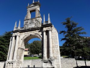Első lendülettel sikerült is eljutni a municipal albergue-vel szembeni kávézóig, ahol az eddigi legjobb tortilla-t ettem, mindjárt 2 pohár narancslével (egy vagyonba került, de majd’ éhen+szomjan haltam). Ezzel a reggeli+ebéd letudva, vacsoráig ki kell bírnom, útközben úgysem lesz túl sok lehetőség megállni, ráadásul nem árt igyekeznem, ha már ilyen későn indulok (végül 3/4 1-kor). A Burgos-ból kivezető út meglehetősen hosszúnak bizonyult, kezdetben a régi épületek közti elhagyatott telkek, szép emlékművek, egy luxusszálló, majd egy nagy park (El Parral), aztán pedig egy csodálatos épület mellett (sajnos nem fényképeztem le), amely régen Királyi kórházként (Hospital del Rey), most pedig az egyetem jogi karának épületekén funkcionál. A külvárosban egyébként sorra érték egymást az egyetemi karok épületei, az egyik kertben például – közvetlen a Camino mellett – épp elmélyülten tanulmányozta egy csapat diák a talajt meg a növényeket. Útközben betértem még egy Mercadona-ba (népszerű élelmiszerbolt-hálózat Spanyolországban), beszerezni a napi kólámat meg 2 banánt az útra, amikor a polcok között kóvályogva magyar szavak ütötték meg a fülemet. Egy fiatal lány a bevásárlókocsiban tolta a hátizsákját, és folyamatosan osztotta a fiút, hogy csak olyan dolgot vegyen meg, amit meg is fog enni/inni, de mindezt olyan stílusban, mintha legalábbis 20 éves házasok lennének. Magamban jót mosolyogtam, hogy vajon túléli-e a kapcsolat a Caminot, meg jó is volt megint magyarokat látni/hallani, bár akkor éppen nem volt kedvem új ismeretségeket kötni, és egy párhoz egyébként sem szívesen csapódnék, szóval inkább gyorsan fizettem és indultam tovább.