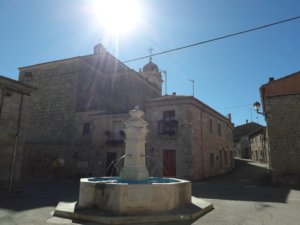 Ahogy arra számítottam is a szokatlan időpontban indulás miatt, zarándokkal nemigen találkoztam egész délután, leszámítva egy pasit, akivel a Burgos utáni első parkos pihenőhelyen akadtam össze, ahol ő evett, én meg vízhólyagokat ápoltam, meg 3 fiatal srácot, akik közben elmentek mellettünk. A srácok előttem, a pasi mögöttem, nagyjából ebben a felállásban haladtunk egy jó ideig, keresztezve az autópályát, aztán a pasi is megelőzött, mert nagyon kínlódtam a lábammal, szinte minden ponton fájt a lábfejem és sokszor meg kellett állnom pihentetni. Jók ezek a vízhólyag-tapaszok, de ha minden oldalra teszek, meg még rá a vastagabb zokni, akkor a cipő lesz kicsi és nyomja a lábamat… ördögi kör! Szóval jól egyedül maradtam, és bár a Meseta egyhangúsága egyelőre nem kapott el (ez még azért nem a klasszikus terep), sőt, a fájdalmak ellenére kifejezetten jólesett gyalogolni, azért egy kicsit unatkoztam. Az időjárásra ma sem lehetett panasz, erősen a 30 fokot közelítette a hőmérséklet, így mire elértem a Burgostól 11 km-re fekvő első települést Tarjados-t, már a kóla és az 1 liter vizem is elfogyott, úgyhogy tikkadozva vetettem rá magam az első utamba kerülő kútra. Helyből megittam vagy fél liter hideg forrásvizet, újratöltöttem minden palackomat, bár a következő falu csak 2,3 km-re volt, nem tudhattam, lesz-e ott is ilyen jó kis víz.