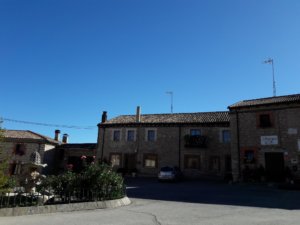 Miután ezt a 950 m magasan fekvő helyet elértem, az út meredeken lejteni kezdett, már feltűnt előttem a távolban Hornillos del Camino, és mögöttem is néhány zarándok (úgy látszik, nem csak én gyalogolok még ilyen későn). Ahogy közeledtem a faluhoz, szépen felöltözött idős párok jöttek szembe, elképzelni sem tudom, hová tarthattak hétfő késő délután, mikor a magam mögött hagyott úton 7 km-en keresztül nem volt semmi. Ha pedig ez csak a szokásos délutáni sétájuk, hát le a kalappal, hogy csak úgy sétálgatnak a Mesetán, ami a zarándokok többségének egy rémálom.