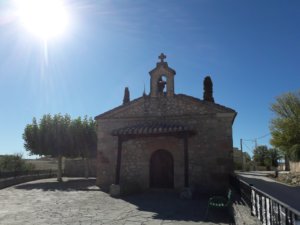 Ezt a luxust viszont már nem engedhettem meg magamnak, hogy egy nap csak 13 km-t megyek, főként a Mesetán nem, úgyhogy elhagytam Rabé de las Calzadas-t, útba ejtve egy kis kápolnát (Ermita de Nuestra Senora de Monasterio), majd az elég nyilvánvaló jelzéseket követve kezdtem felmászni a dombra, az igazi fennsíkra.