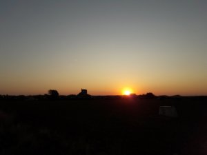 Sikerült 8:35-ig elszöszmötölnöm meg cseverésznem, úgyhogy csak nem jött össze a korai indulás, de azért a napfelkeltét már a falut elhagyva kaptam el ma is.