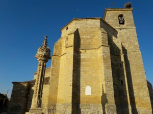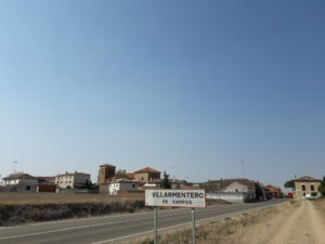 Nem is maradtam sokáig, célba vettem a 3,3 km-re fekvő Revenga de Campos-t, ami egy elég unalmas kis falunak bizonyult, a fő utca melletti szűk járdán gyalogolva az egyetlen érdekességet a templom előtti parkos kis téren csevegő apácák jelentették. Az Út már Frómista óta gyakorlatilag végig a P-980-as főút mellett vezetett, sokan ezt tartották az egyik legunalmasabb és leglehangolóbb szakasznak, de én valahogy szerettem. Itt legalább egyértelmű volt, hogy nem tévedek el, csak követni kellett az autóutat, és ha nem is emberekkel, de legalább járművekkel találkoztam, ráadásul még kedvesen rám is dudáltak és néha ‘Buen Camino’-t kiabáltak felém. Revenga de Campos után végre sikerült lebonyolítanom egy otthoni hívást is, és megtudtam, hogy vannak imádott 4 és 2 éves kis “barátnőim”, akik már nagyon hiányoztak. Persze velük nem, csak az anyukájukkal beszéltem, aki épp egy vízhólyaggal küzdött a nagy rohanásban, és tőlem kérdezte, hogy lehet ezzel gyalogolni. Hogy eggyel hogy lehet, arra már annyira nem emlékeztem, de mindenesetre héttel remekül! Jó volt egy kicsit “hazai” hangot hallani, azért ez a nap minden szépsége ellenére elég nyomasztott már, de így könnyebb volt átvészelni a Villarmentero de Campos-ig vezető 2,2 km-t.