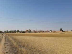 Délután 4 előtt nem sokkal értem el a mai célom előtti utolsó települést, Villalcázar de Sirga-t, innét még 5,6 km várt rám, úgyhogy leültem egy kicsit az út mellett. A településre végül nem mentem be, a vízhólyagok ápolása és egy kis ivás után nekivágtam a hátralévő útnak.