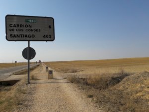 Sikerült kapásból rossz felé mennem, sárga nyilak sehol, és elég soká jött járókelő is, aki aztán eligazított a helyes irányba. Nem csoda, hogy eltévedtem, egyáltalán nem láttam nyilat az elágazásnál, de szerencsére ilyenkor mindig van, aki kisegít. Frómista-ból kifelé először egy kicsit az autópálya felett, majd a főút mellett gyalogoltam 3,5 km-en keresztül Población de Campos-ig.