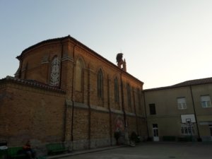 Carrión de los Condes-be érve aztán ez sikerült is (nem is csoda, 53 perc alatt tettem meg a 6 km-t, csúcssebesség), egy kedves középkorú olasz pár volt, akik nagyon sokat fényképeztek és kedvesen mosolyogtak rám. Carrión de los Condes volt egyébként az egyetlen olyan település név a Camino-n, amit még napokkal később sem tudtam megjegyezni, legalábbis azok közül, ahol megszálltam, mert a Meseta bővelkedett a nagyon hosszú nevű falvakban és városkákban.
