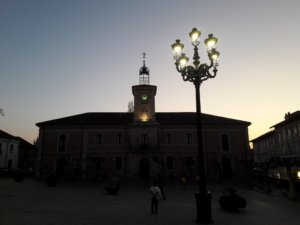 A szálláslista szerint 4 albergue közül választhattam, de az egyik elég drága volt, az kiesett, ráhajtottam inkább a két 5€-sra. Az első – de még nem az 5€-sok közül – meg is lett hamar, egy kolostor mellett, ahol az olaszok kivételesen kevesebbet fotóztak nálam, így itt el is vesztettük egymást. Mivel már este fél 6 volt, és azért csak laknak vagy 2300-an a városban, volt mozgolódás az utcákon, és nem csak a zarándokok miatt, bár a vendéglátóipari egységek jórészt velük voltak tele. Már nagyon szívesen leültem volna én is, kicsit hosszú volt ez a nap, és még az albergue-ket sem sikerült olyan könnyen megtalálni, muszáj volt a google maps-hez folyamodnom. A Santa Maria tűnt közelebbinek, ráadásul így keresés közben a templom (Iglesia de Santa María del Camino, mi más) előtti helyes kis teret is útba ejthettem, viszont az albergue csak nem akart felbukkanni, pedig még az egyik erkélyről egy néni is utánam kiabált (¡Oy, peregrina!), aztán spanyolul útbaigazított, amiből persze semmit nem értettem. Mikor aztán a térkép segítségével nagy nehezen megtaláltam, hiába csöngettem a szomszédos épület kapuján a “recepción” kiírtaknak megfelelően, senki nem nyitott ajtót, és a többi zarándok is csak annyit mondott, hogy várjak, biztosan már a misére készülődnek a hospitalera-k. 10 percre leültem, az elég jól esett, de semmi nem történt, így kicsit idegesen odébb álltam, és nemsokára megtaláltam a másik 5€-s szállást, az Espíritu Santo-t.